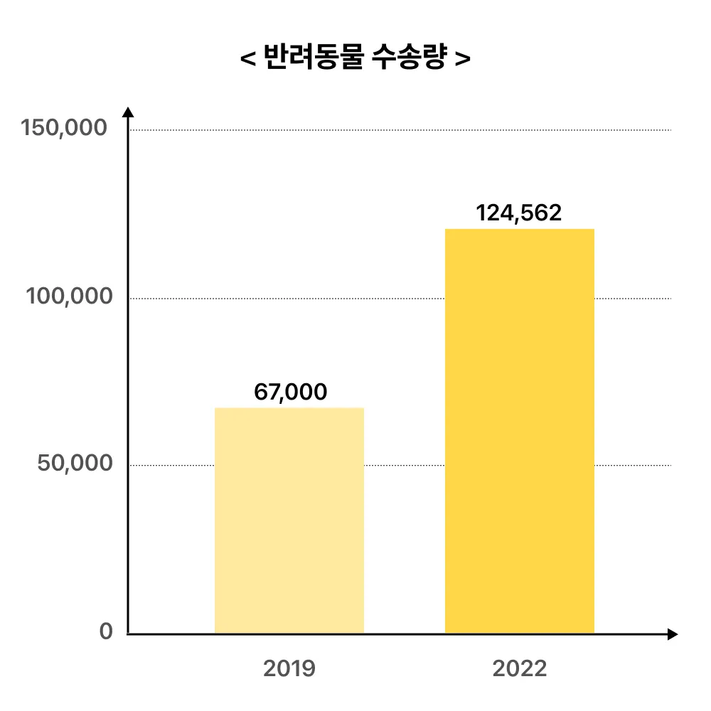 2022년 1~3분기 반려동물 수송량이 이미 2019년의 두 배에 가까운 수치를 기록했어요.