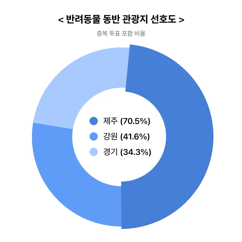 제주도는 이미 반려동물 동반 국내 여행지 중 70.5%로 1위를 기록하고 있어요. (중복 투표 포함)