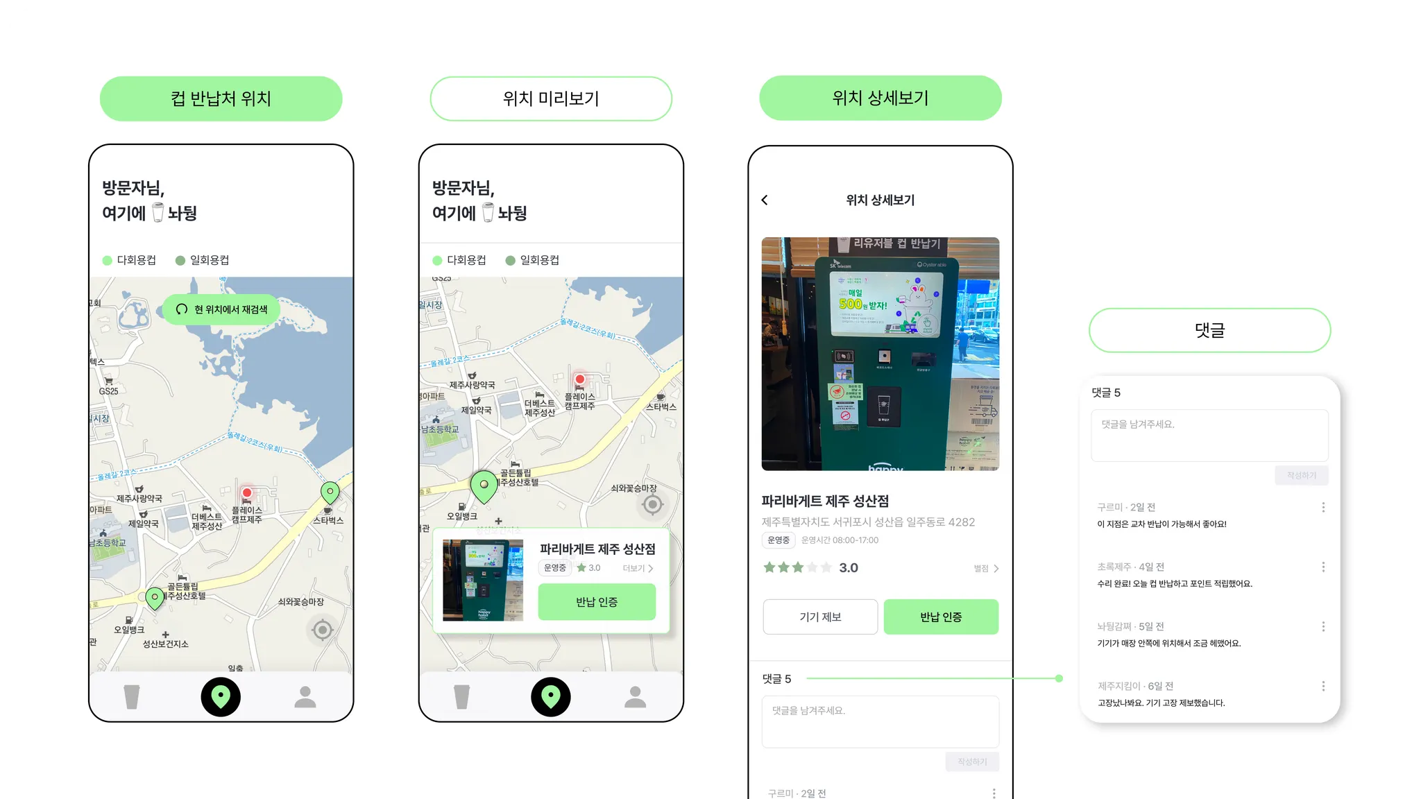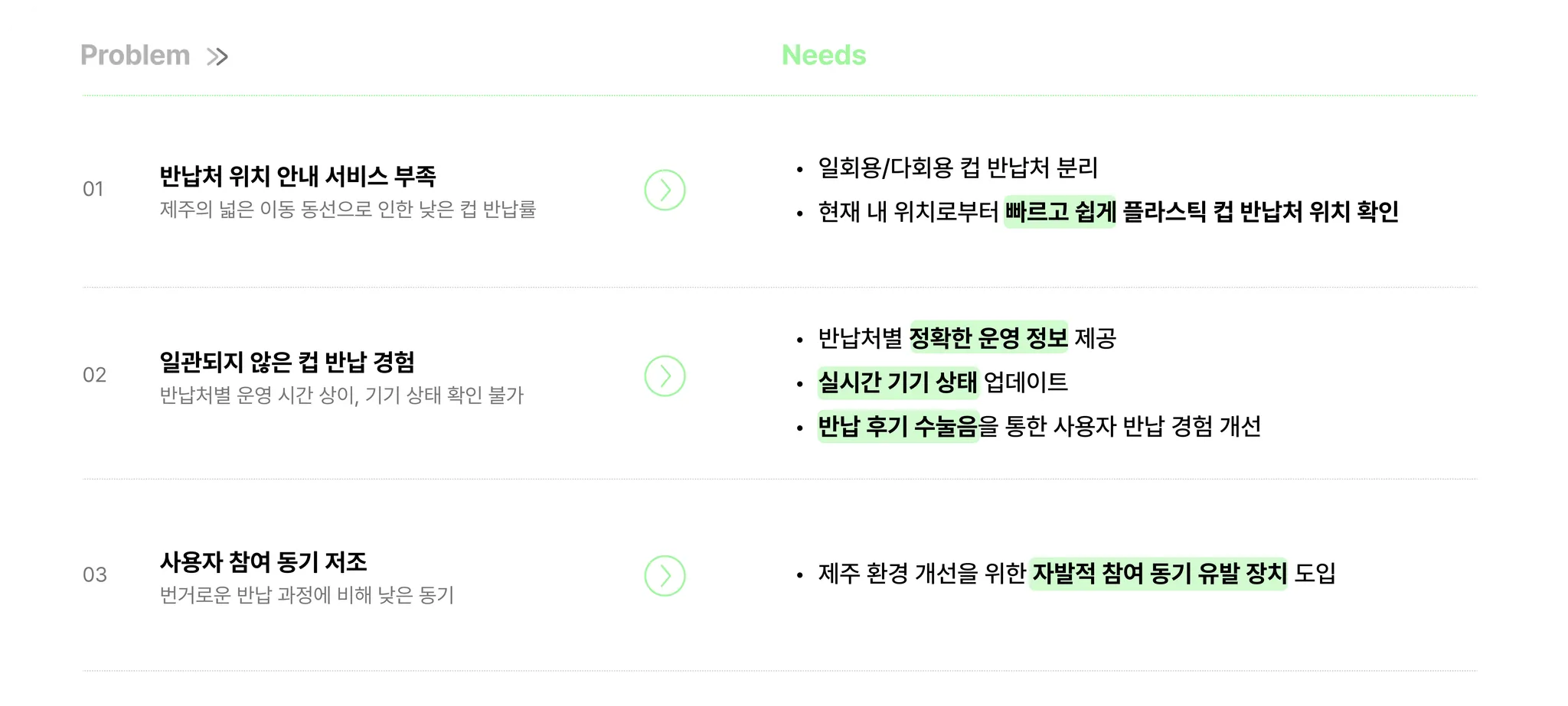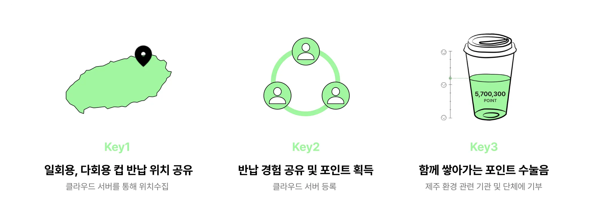 컵 반납처의 정확한 정보를 전달 및 공유하고, 보증금 환급 수단을 확대하여 자원 순환 참여를 장려하는 서비스를 제공