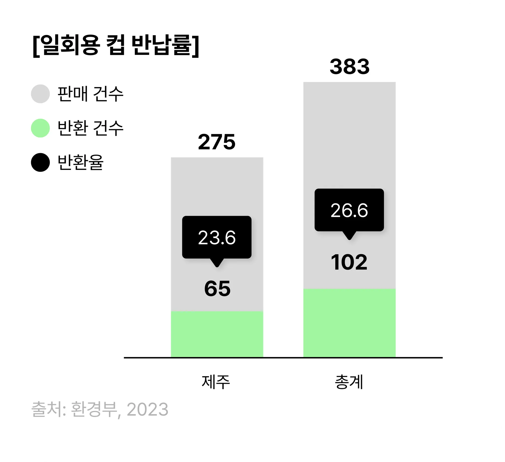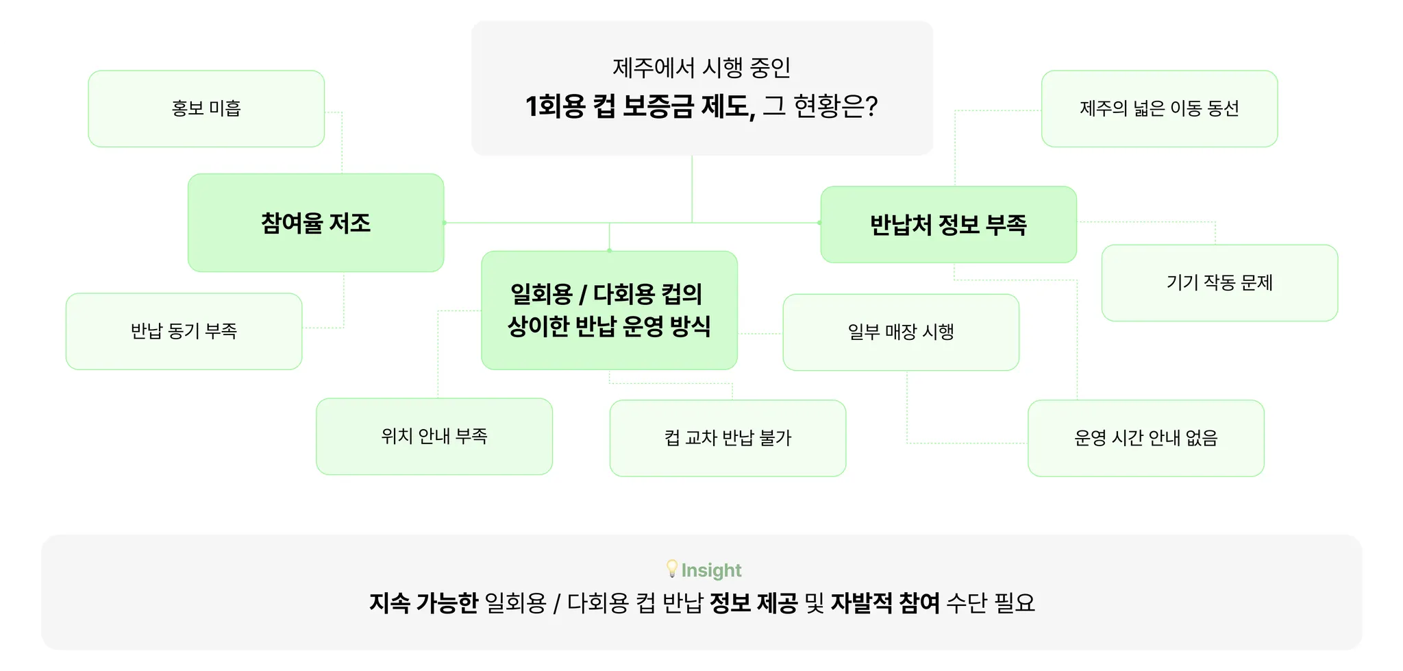 일회용 / 다회용 컵 반납 제도 참여율 증진을 위한 사용자 경험 개선 및 자발적 동기 부여 장치 필요