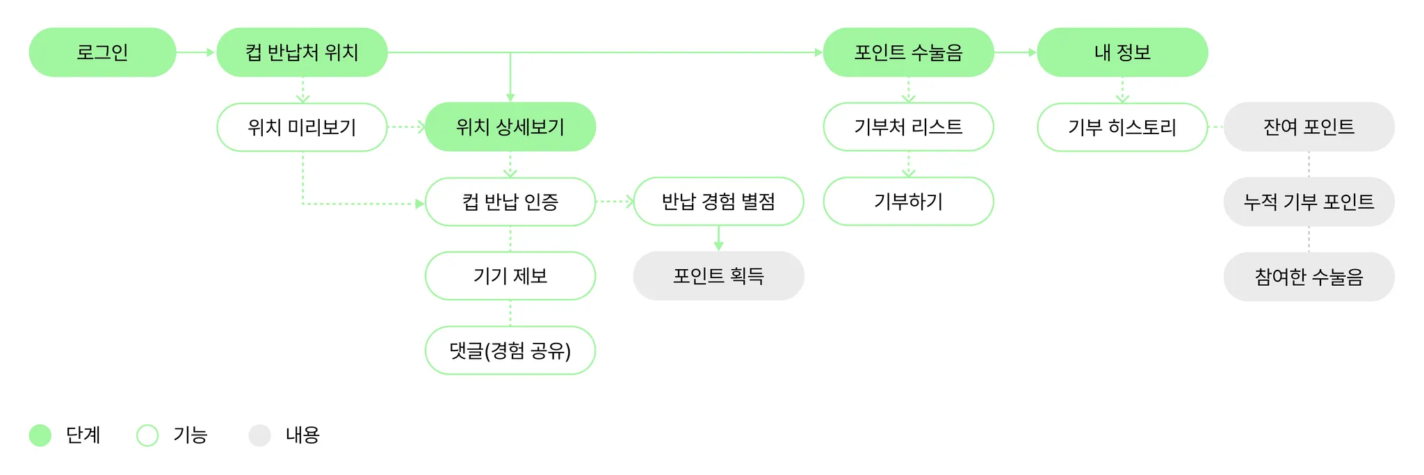 일회용/다회용 컵 반납처의 정보를 공유하고, 적립한 포인트를 기부하는 자원 순환 참여 플랫폼