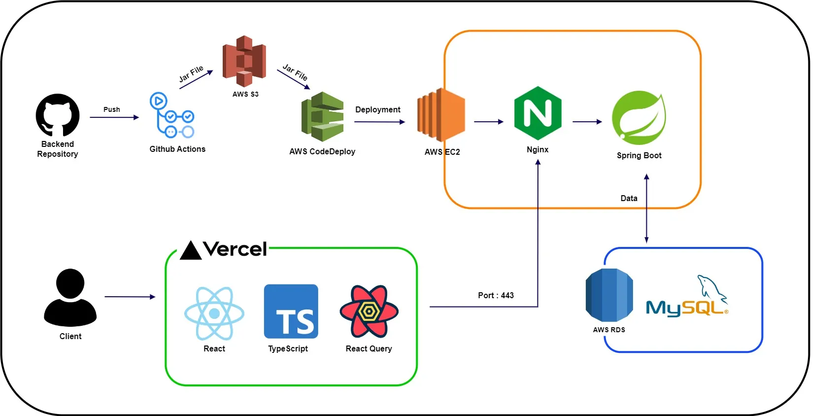 Spring Boot, Spring Batch, Java 11, Nginx, Github Action, AWS EC2, RDS, S3, Code Deploy