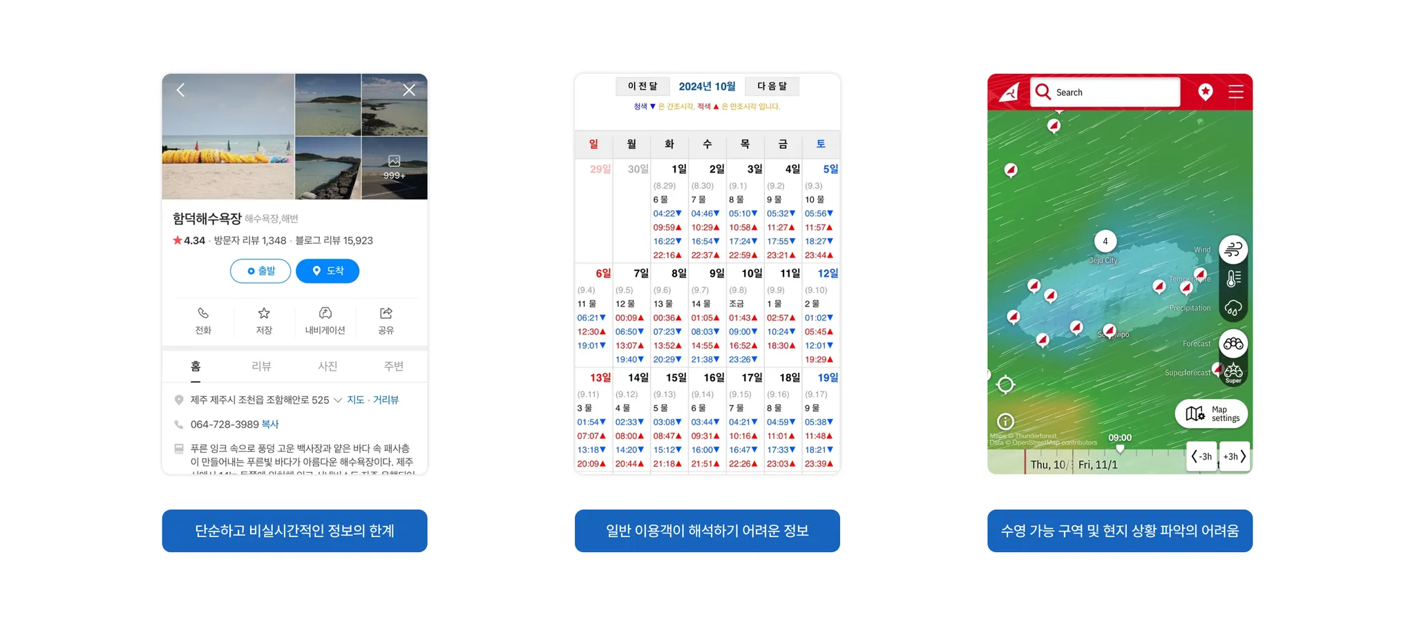 실시간 바다 정보 부족으로 인한 여행 계획의 어려움