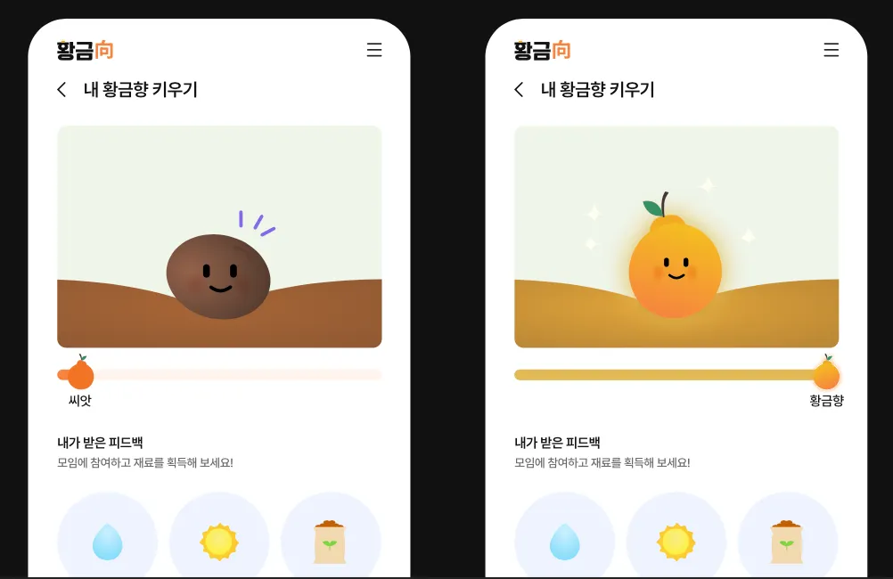 사용자가 가상의 황금향 나무를 키우며 성장 과정을 즐길 수 있는 게임적 기능을 제공합니다.