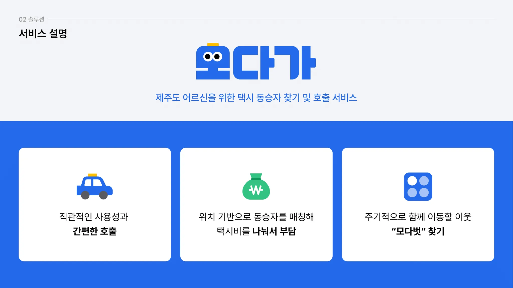 모다가는 제주 지역 어르신들이 겪는 교통 불편을 해결하기 위해 만들어진 혁신적인 서비스입니다.