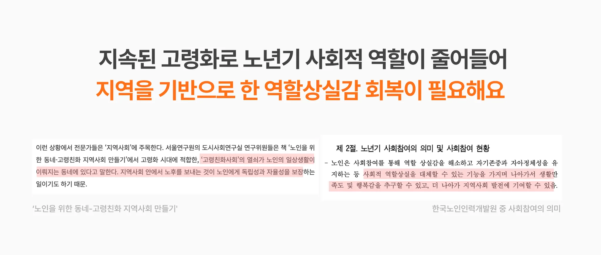 사회적 역할이 줄어들어 지역을 기반으로 한 역할상실감 회복이 필요해요.