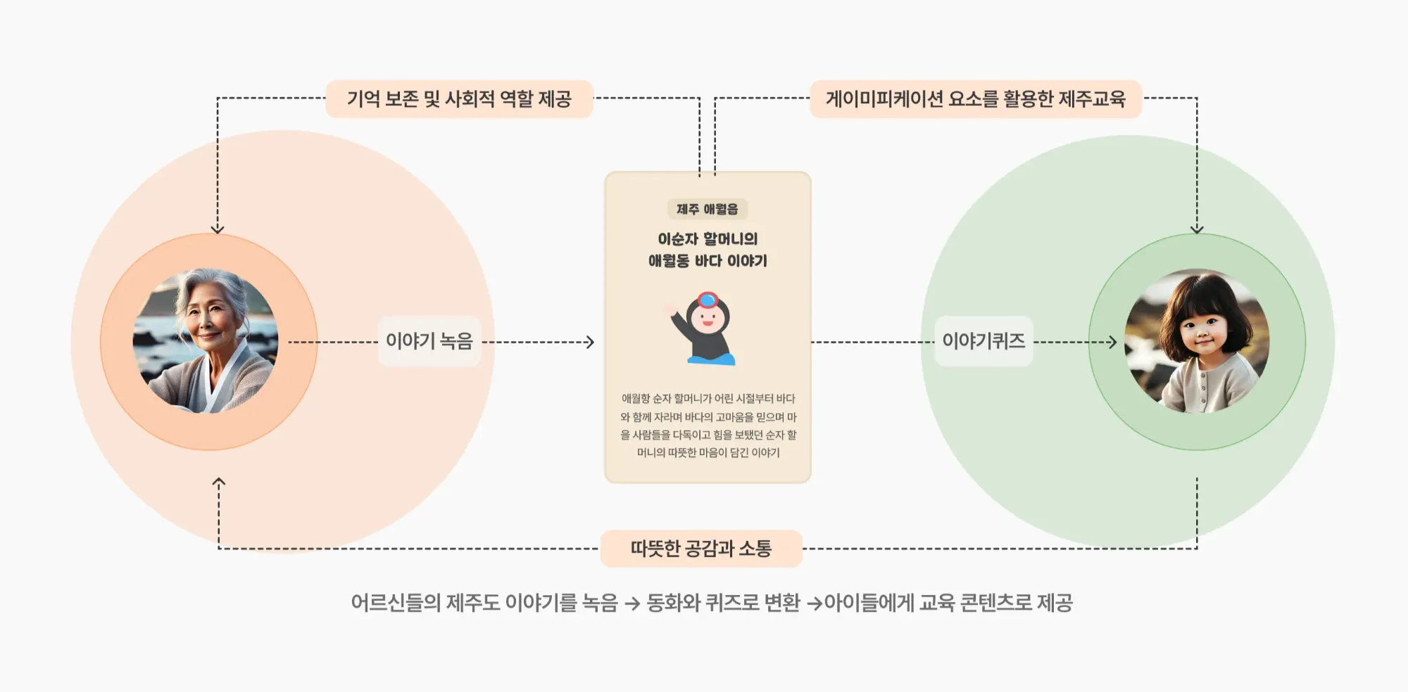 어르신들이 직접 들려주시는 제주 이야기를 통해 사회적 소외감을 해소하고, 어린이들은 동화와 퀴즈로 즐기며 제주의 문화를 배워요.