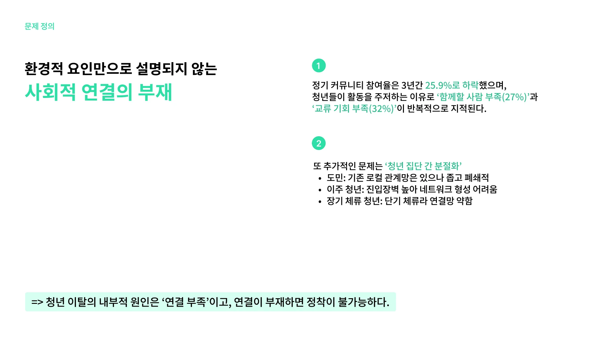 내부적 핵심 원인은 청년들의 사회적 연결의 부재