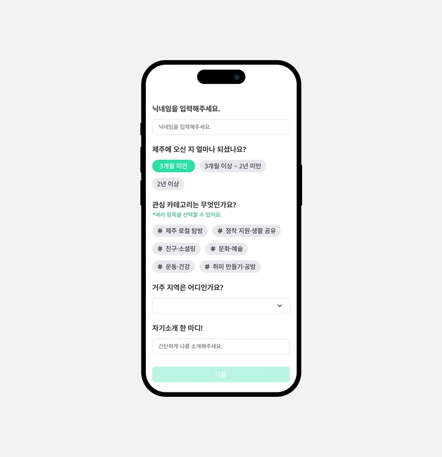 제주 청년 이주민, 도민, 장기 체류자가 관심사를 기반으로 자연스럽게 섞인 소모임을 자동으로 매칭해주는 서비스 - 도르멍