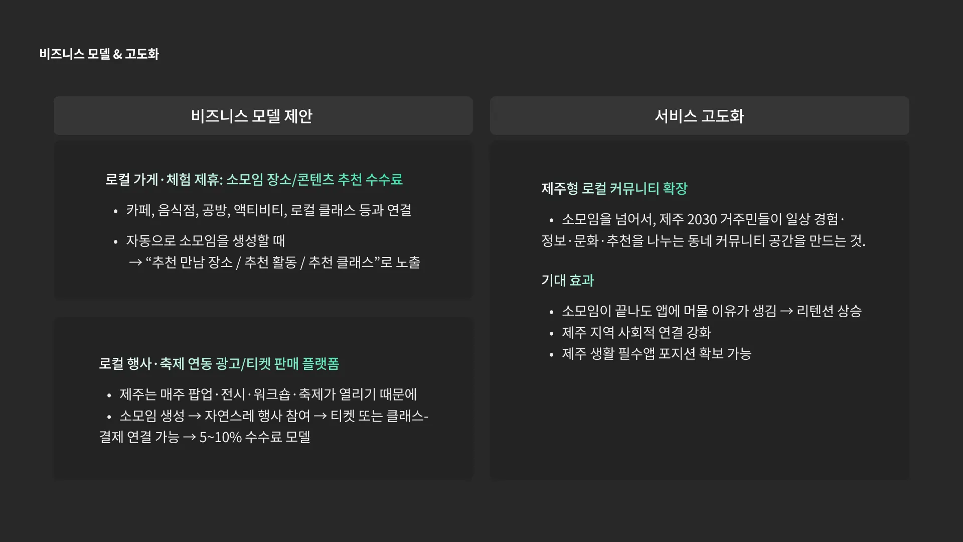 다양한 로컬 행사·축제가 열리는 제주에서 이벤트들의 광고/티켓 판매 플랫폼으로 확장 가능