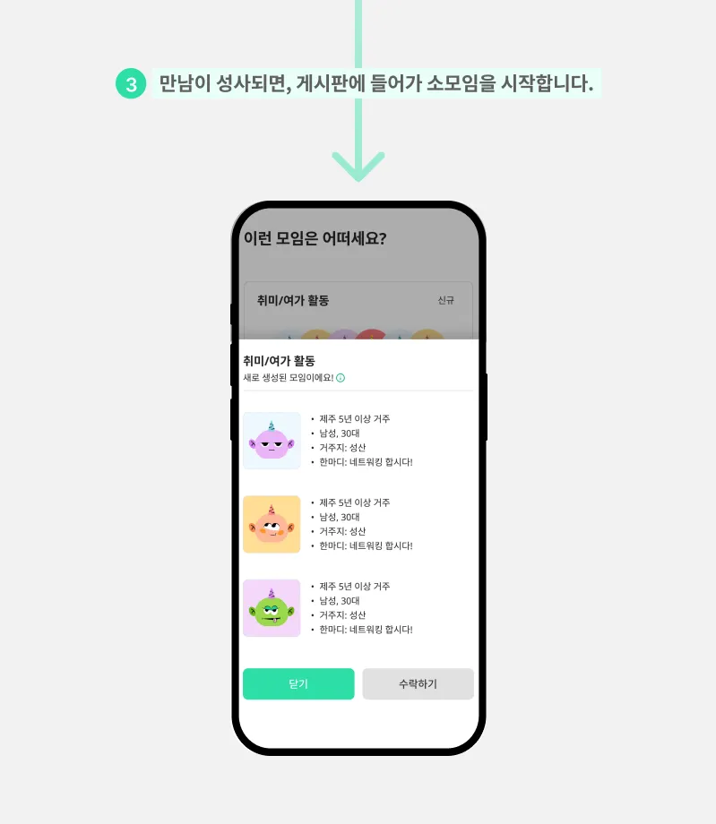 ‘수락하기’를 누르면 만남이 성사됩니다.