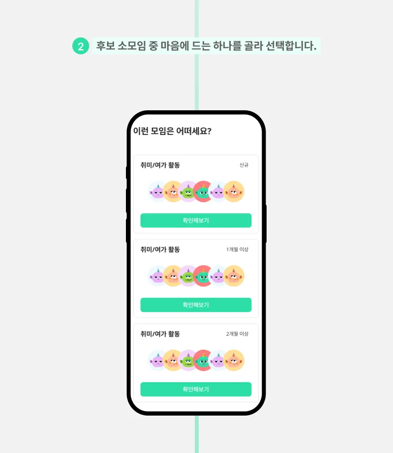 소모임마다 ‘확인해보기’ 버튼을 통해 구성 인원의 정보를 파악할 수 있습니다.