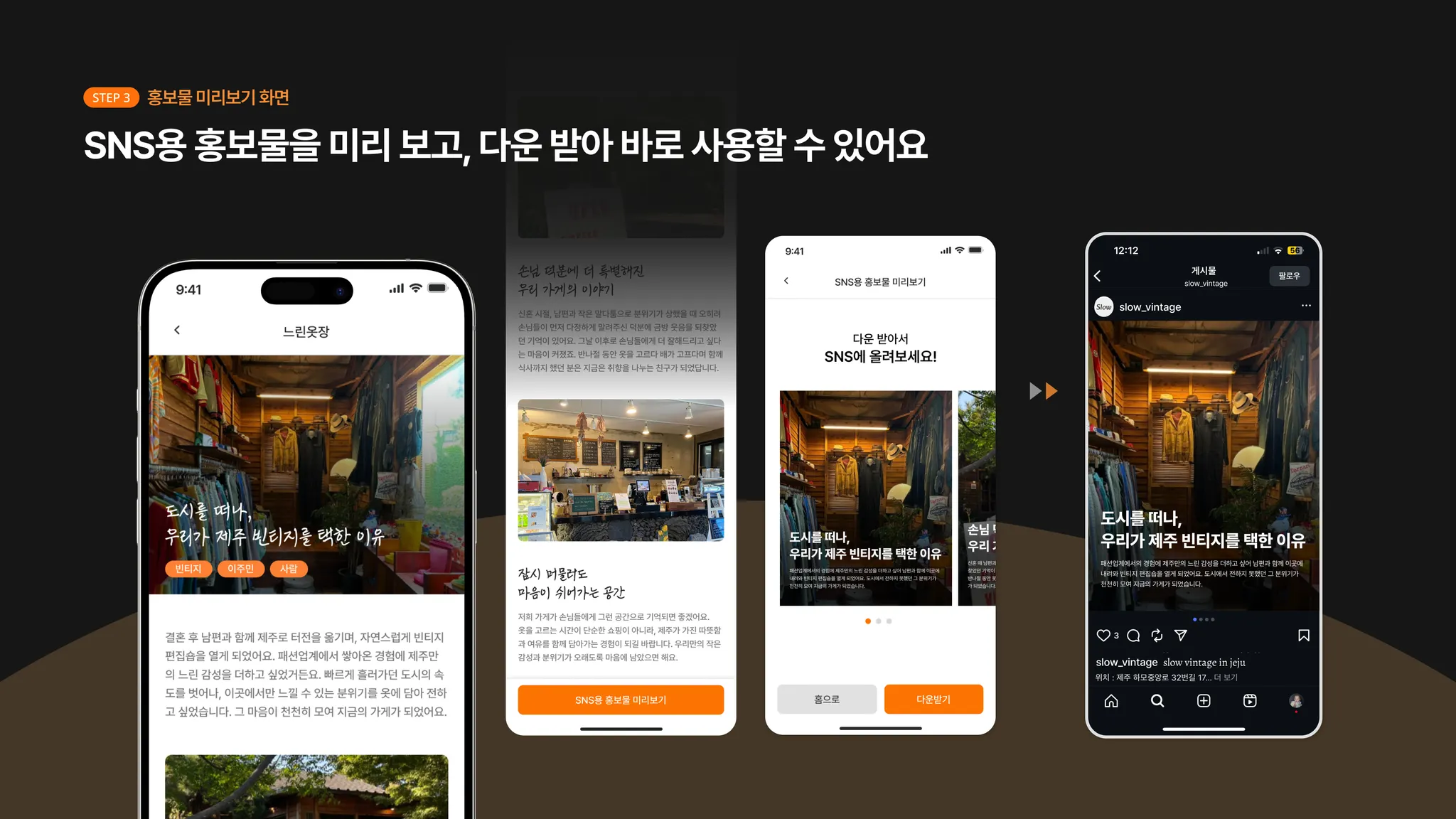 : 홍보물을 미리보고, 다운 받아서 바로 SNS에 업로드할 수 있어요.