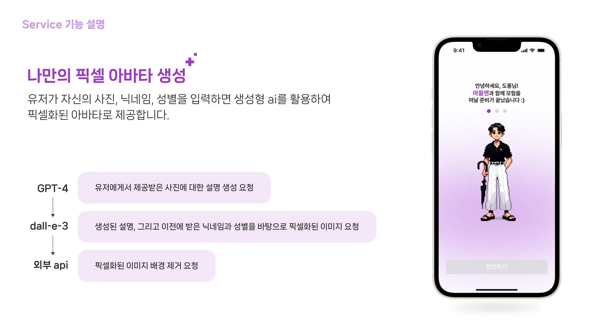 GPT-4와 dall-e-3을 이용하여 유저의 사진, 성별, 나이를 반영한 픽셀 아바타를 생성해요