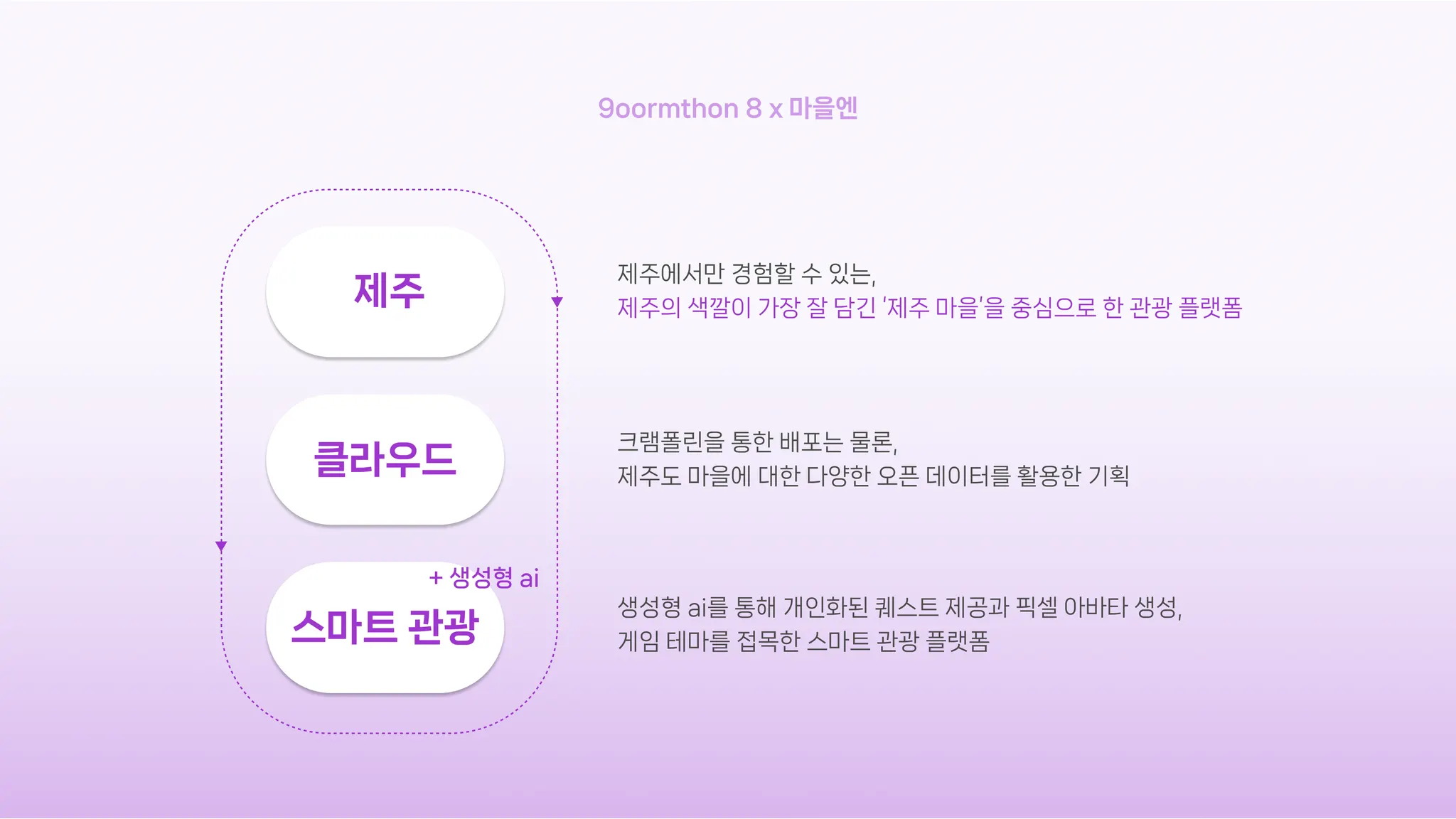이번 구름톤의 마지막 주제는 ‘생성형 ai’를 활용한 스마트 관광이었어요. 마을엔은 구름톤의 주제를 다음과 같이 녹여냈어요!