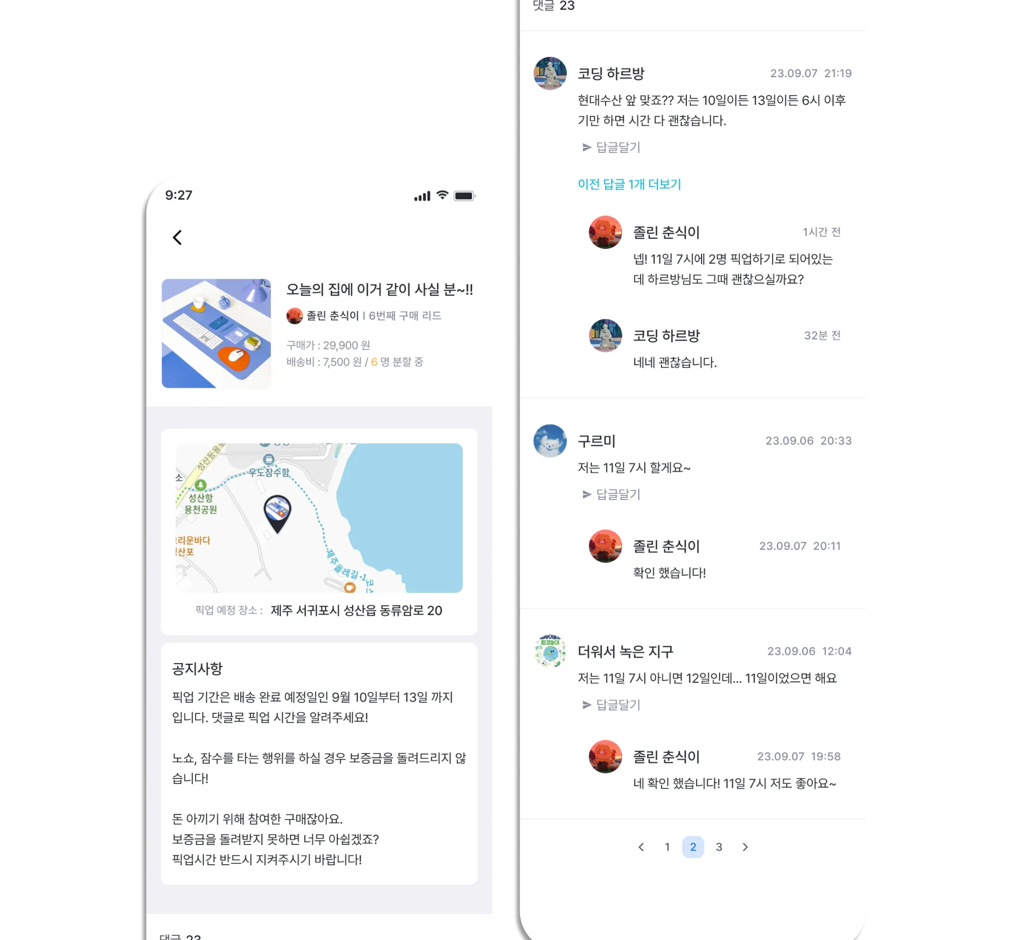 지구미에서 공동 구매를 이용하는 사용자들은 직접 픽업을 받으러 가요.