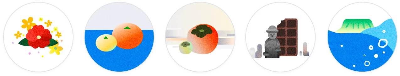 제주를 떠올리게 하는 일러스트를 활용해 5가지의 대표적인 테이스팅(단맛, 산미, 탄닌감, 묵직함, 청량감)을 나타냈어요.