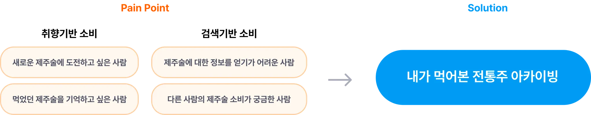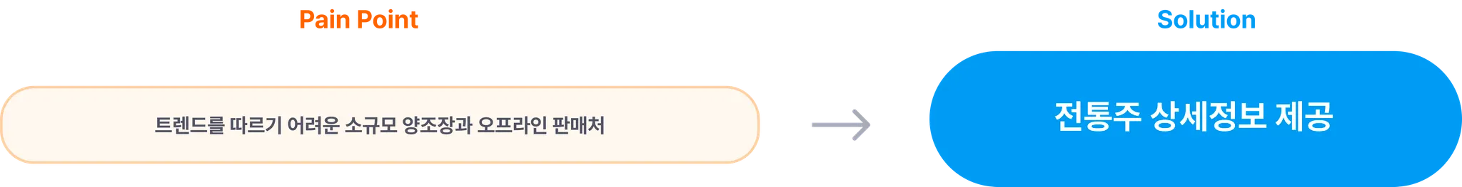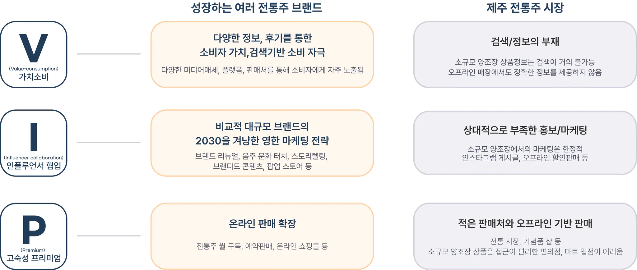 제주도 내 소규모 전통주 양조장 소비를 돕는 서비스의 부재를 문제로 설정하였습니다.