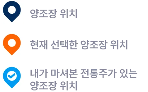 기존에 파악하기 어려웠던 지도 - 양조장 - 전통주 연계검색 또한 가능합니다.