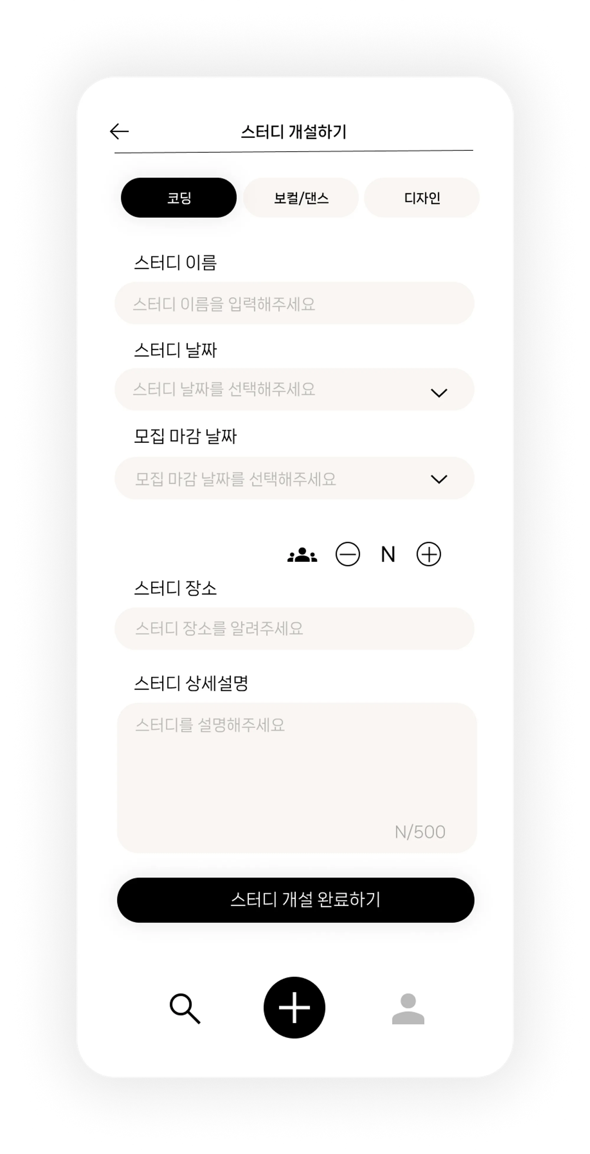 스터디 정보를 입력하고 개설한 후 스터디원을 기다려보세요.