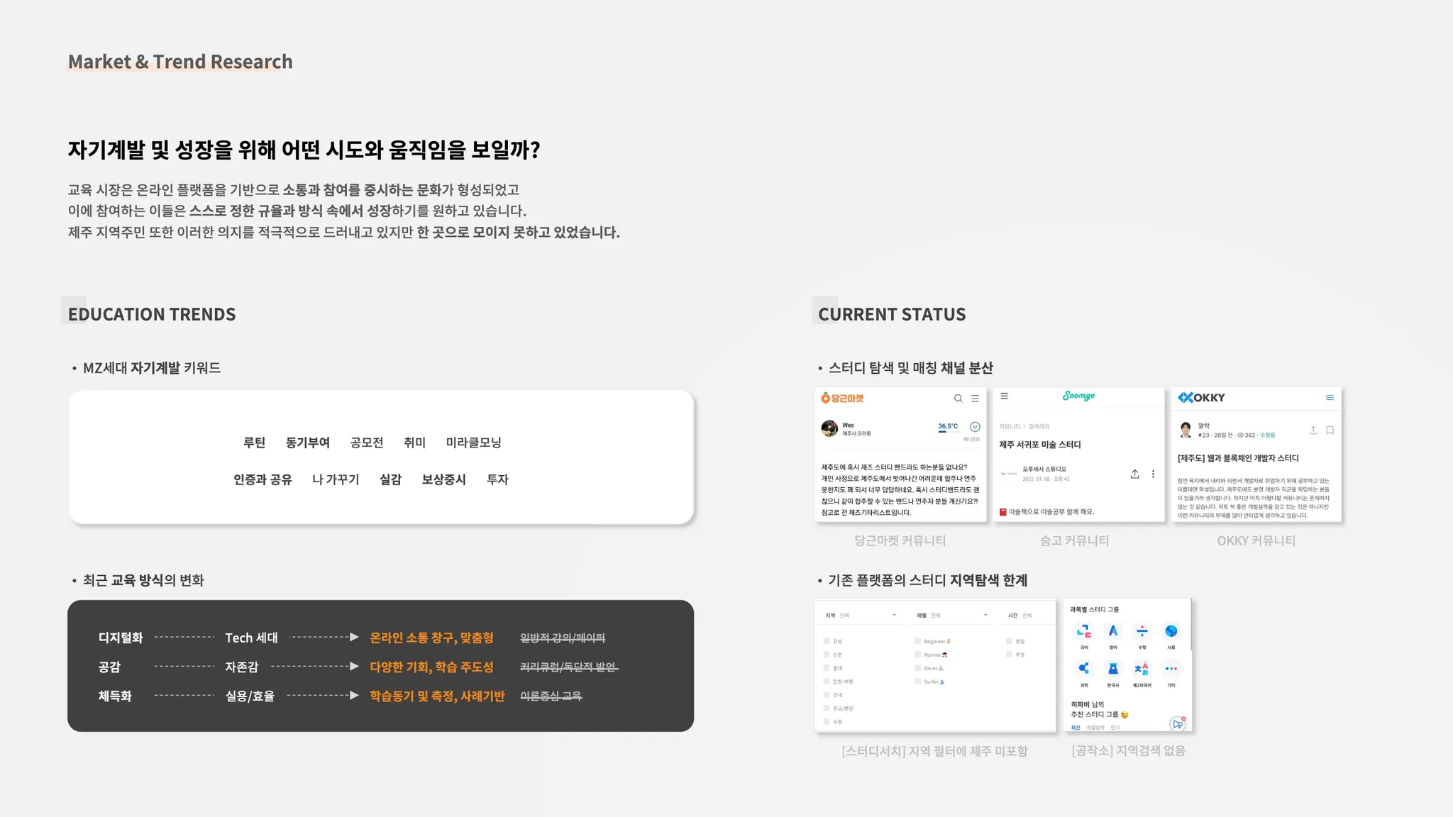 교육시장 흐름을 따르면서 제주도민의 Pain point를 바로 해소할 서비스!