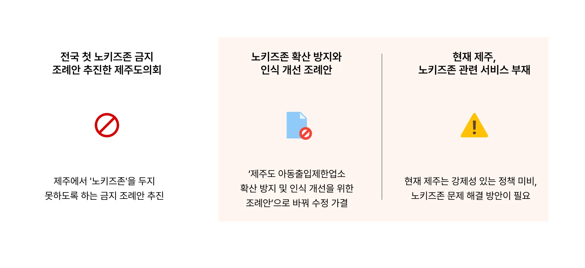 전국 첫 노키즈존 금지 조례안을 추진했지만, 확산 방지와 인식 개선 조례안으로 수정 가결되었어요.