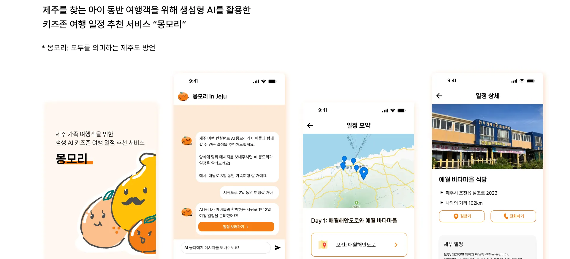 생성형 AI 를 활용한 제주 키즈존 일정 추천 서비스 [몽모리]를 통해 제주에서 관광을 스마트하게 즐겨보세요!