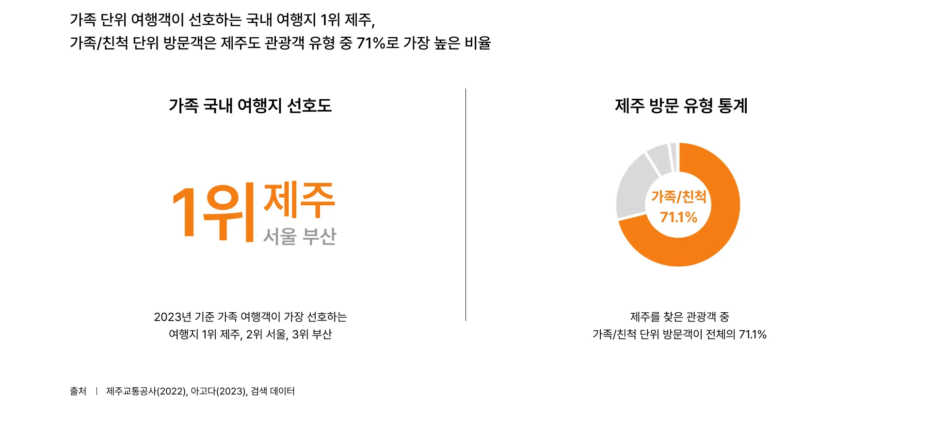 가족 단위 여행객이 선호하는 국내 여행지 1위 제주, 실제로 제주를 찾은 관광객 중 가족/친척 단위 방문객이 전체의 71.1%
