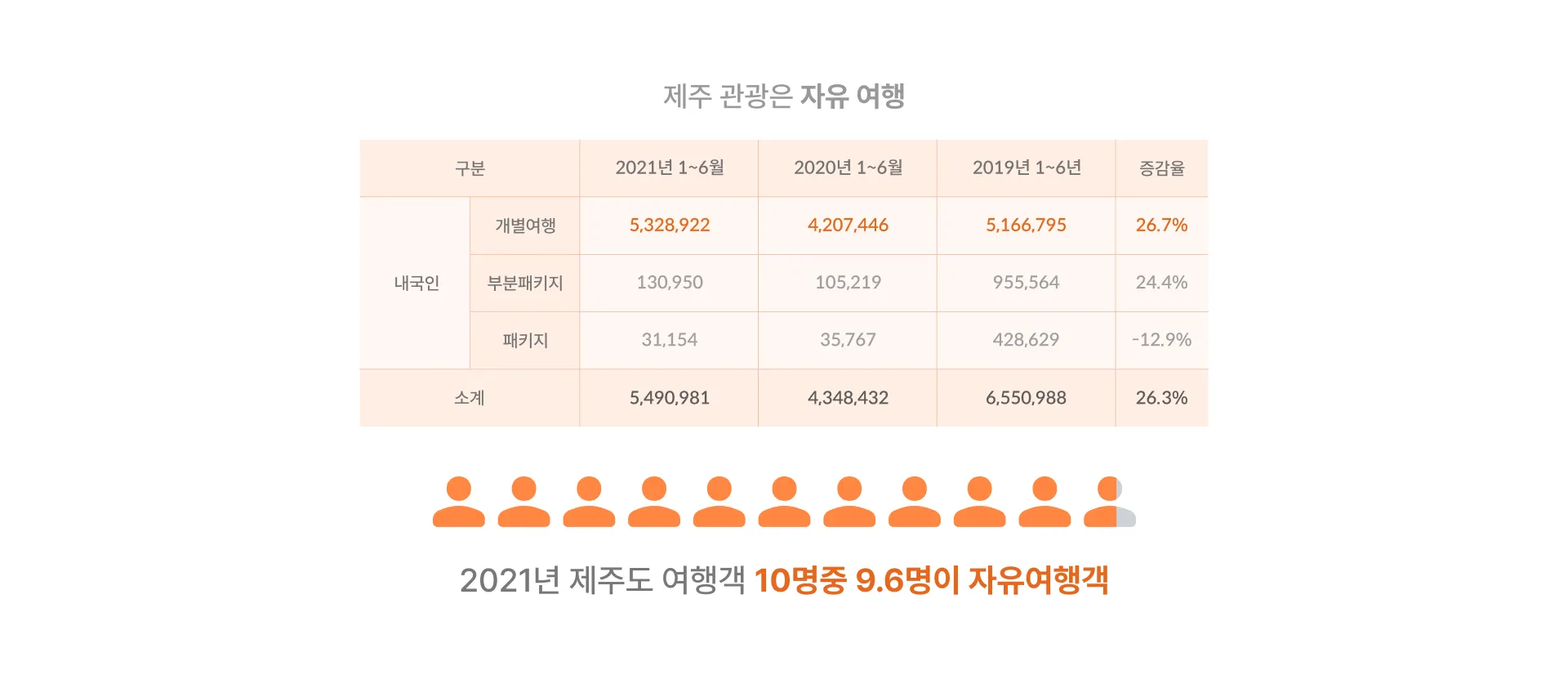 배낭여행의 메카로 불리기도 하는 제주도는 10명중 9.6명이 자유여행객일 정도로 개별 여행객이 주를 이루고 있습니다.